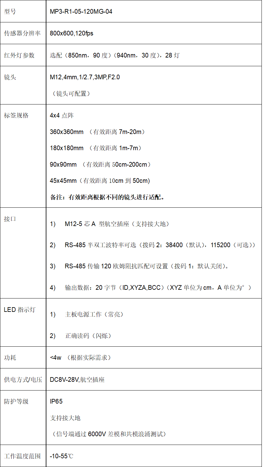 该相机不依赖于可见光,自主使用红外补光,可以实现最高每秒120张的识别速度,获取参考点的位置、相对角度和坐标。该相机可广泛应用于立体停车场、智慧仓储、堆垛机、载货AGV或叉车、移动机器人、火车、挖矿工程车辆、无人机和起重设备等的视觉引导定位场景中。